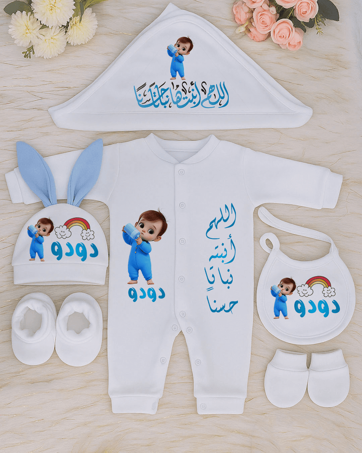 👶 طقم مواليد مميز – 6 قطع مثالية للسبوع أو المستشفى