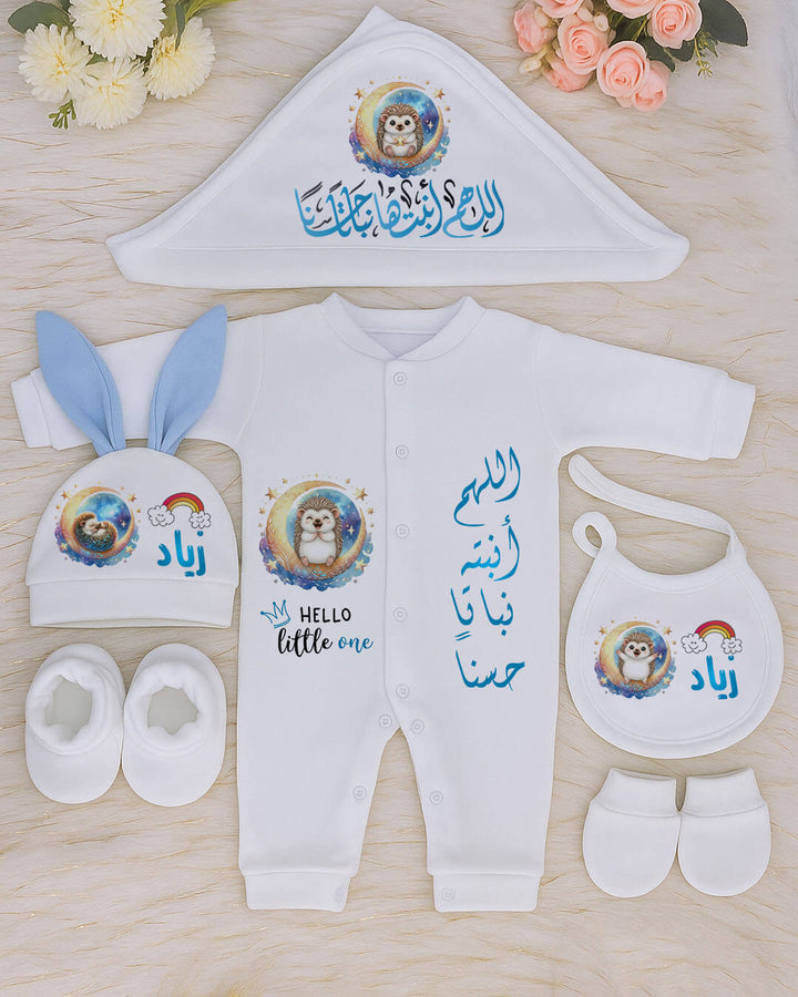 👶 طقم مواليد مميز – 6 قطع مثالية للسبوع أو المستشفى
