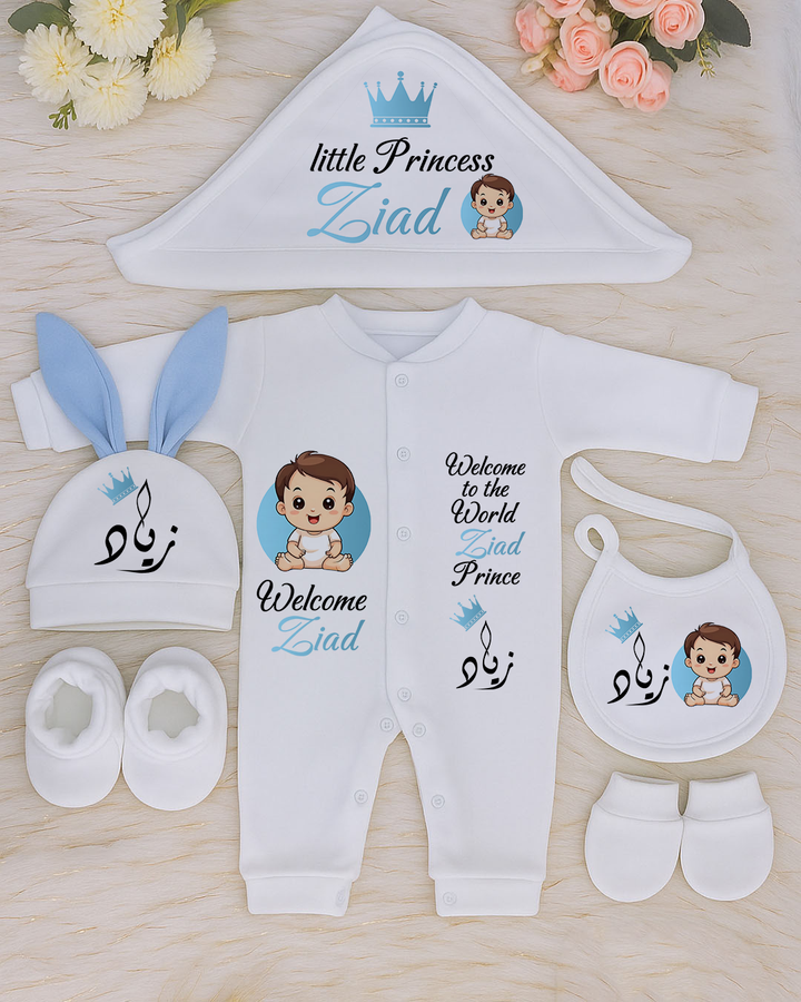 👶 طقم مواليد مميز – 6 قطع مثالية للسبوع أو المستشفى