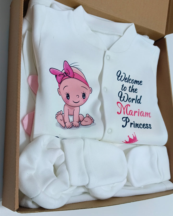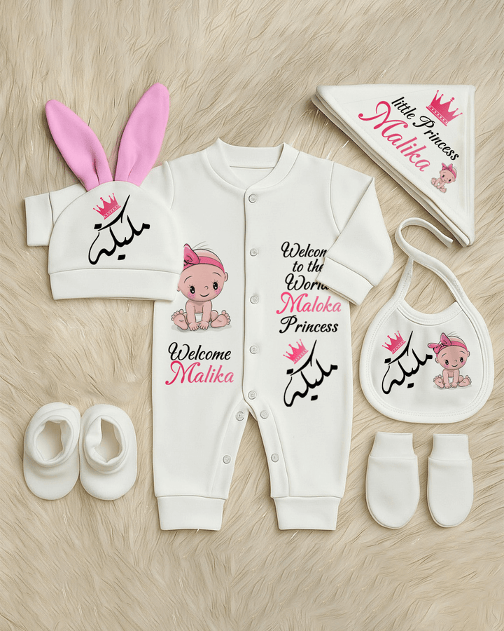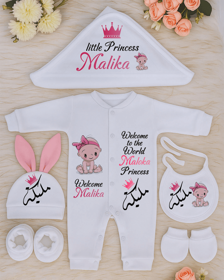👶 طقم مواليد مميز – 6 قطع مثالية للسبوع أو المستشفى
